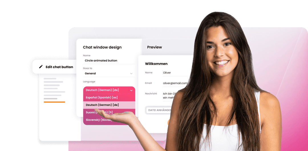 Vylepšete zákaznický servis pomocí přizpůsobitelného tlačítka chatu LiveAgent. Směrujte dotazy, povo...