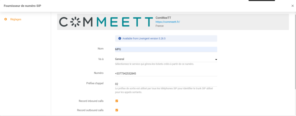 Jak implementovat VoIP číslo od ComMeeTT do LiveAgentu?