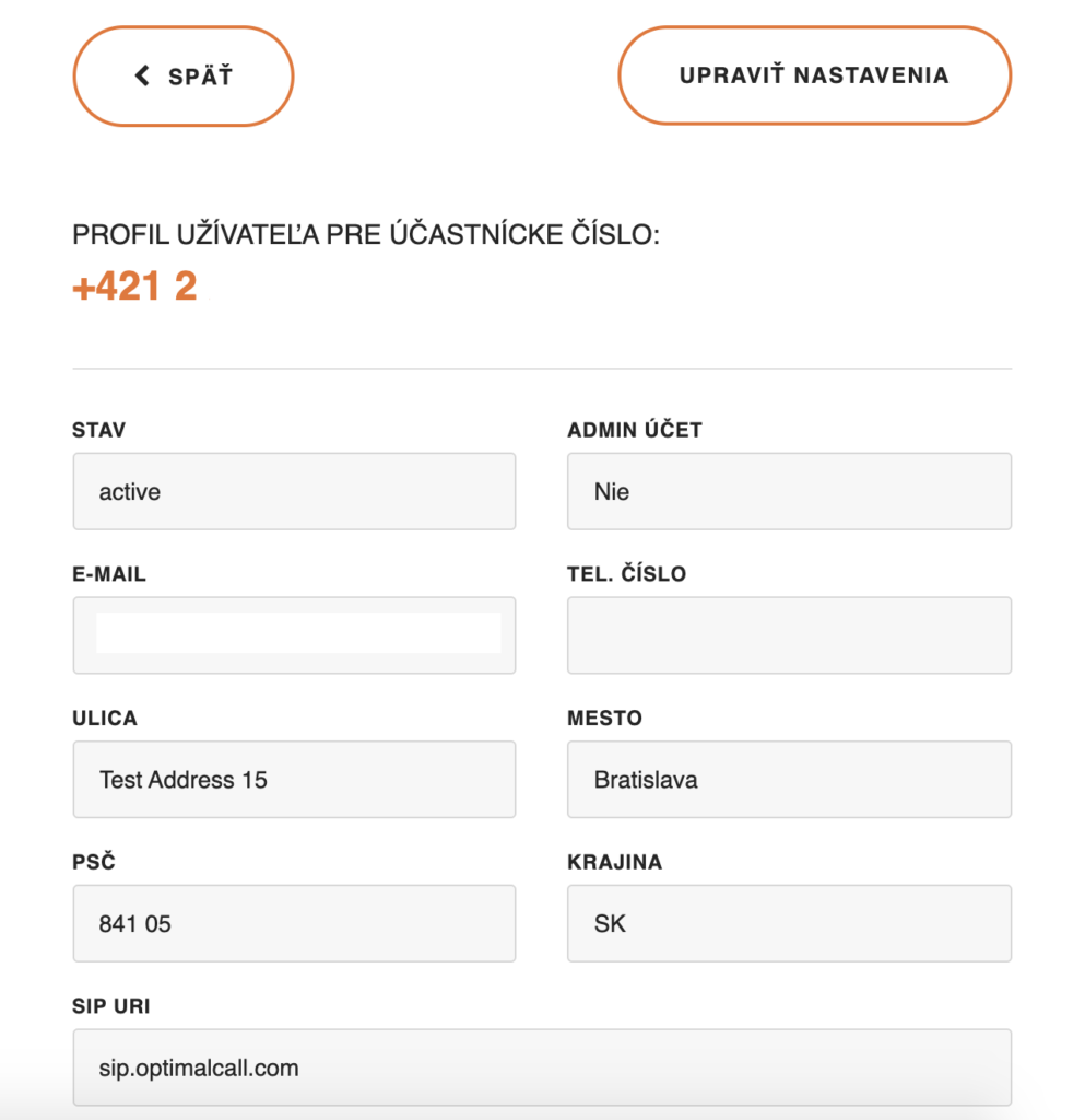 - Informace můžete také najít v profilové části svého účtu Optimal Call. Připravte si informace pro další kroky.