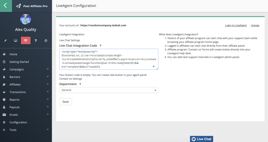 Jak integrovat LiveAgent se službou Post Affilliate Pro