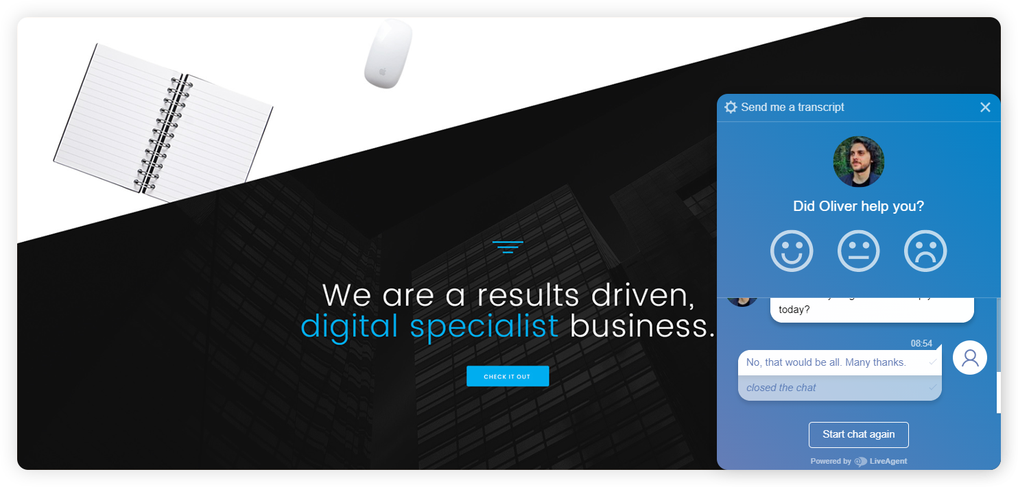 Chatovací software LiveAgent je personalizovaný tím, že jej místo chatbota obsluhuje lidský zástupce. Prostým uvedením jména mohou agenti ujistit zákazníky, že na druhé straně je skutečný člověk.