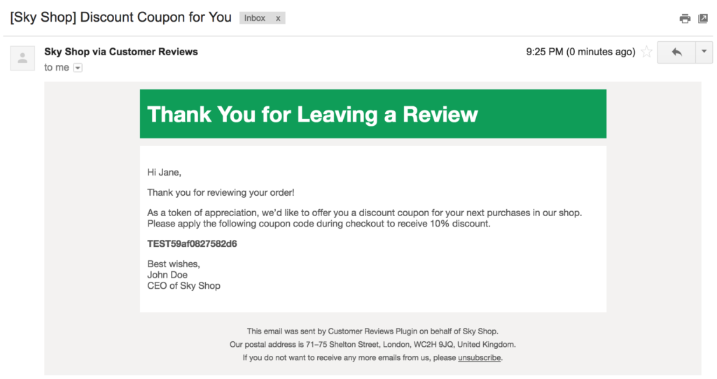 Thank you for being joining our subscription list! We’re thrilled to offer you a special discount on our [products]. Please use the code below at the checkout to activate your X% discount:
