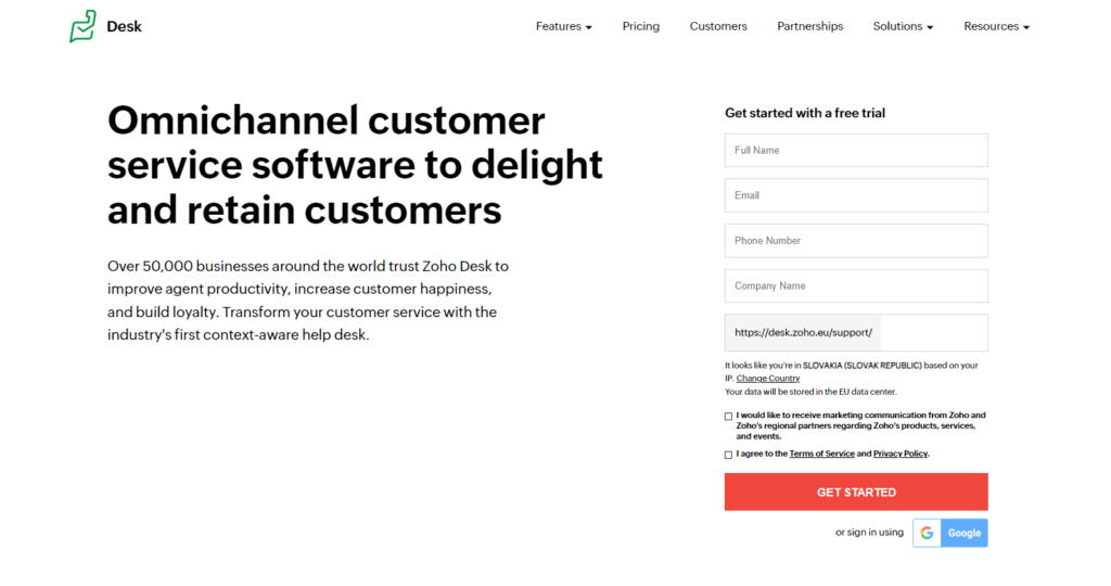 Zoho Desk je software pro správu stížností zákazníků, který byl navržen s ohledem na služby zákazníkům. Poskytuje pracovníkům zákaznického servisu snadný přístup k informacím o zákaznících, prohlížení historie zákazníků, předchozích konverzací a další informace. ZohoDesk umožňuje týmům zákaznického servisu poskytovat lepší podporu tím, že zefektivňuje celou zákaznickou zkušenost od okamžiku odeslání tiketu až po jeho vyřešení.
